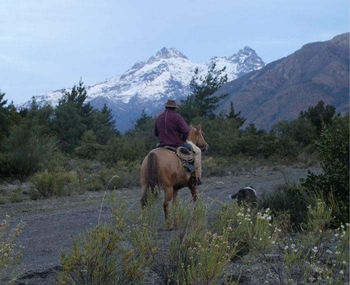 Javier Sepúlveda, arriero, buscando su ganado en alturas medias de la cordillera centrina. Manifestación reconocida en el Registro de Patrimonio Cultural Inmaterial. Precordillera Centrina. Comuna de Antuco, región del Biobío.