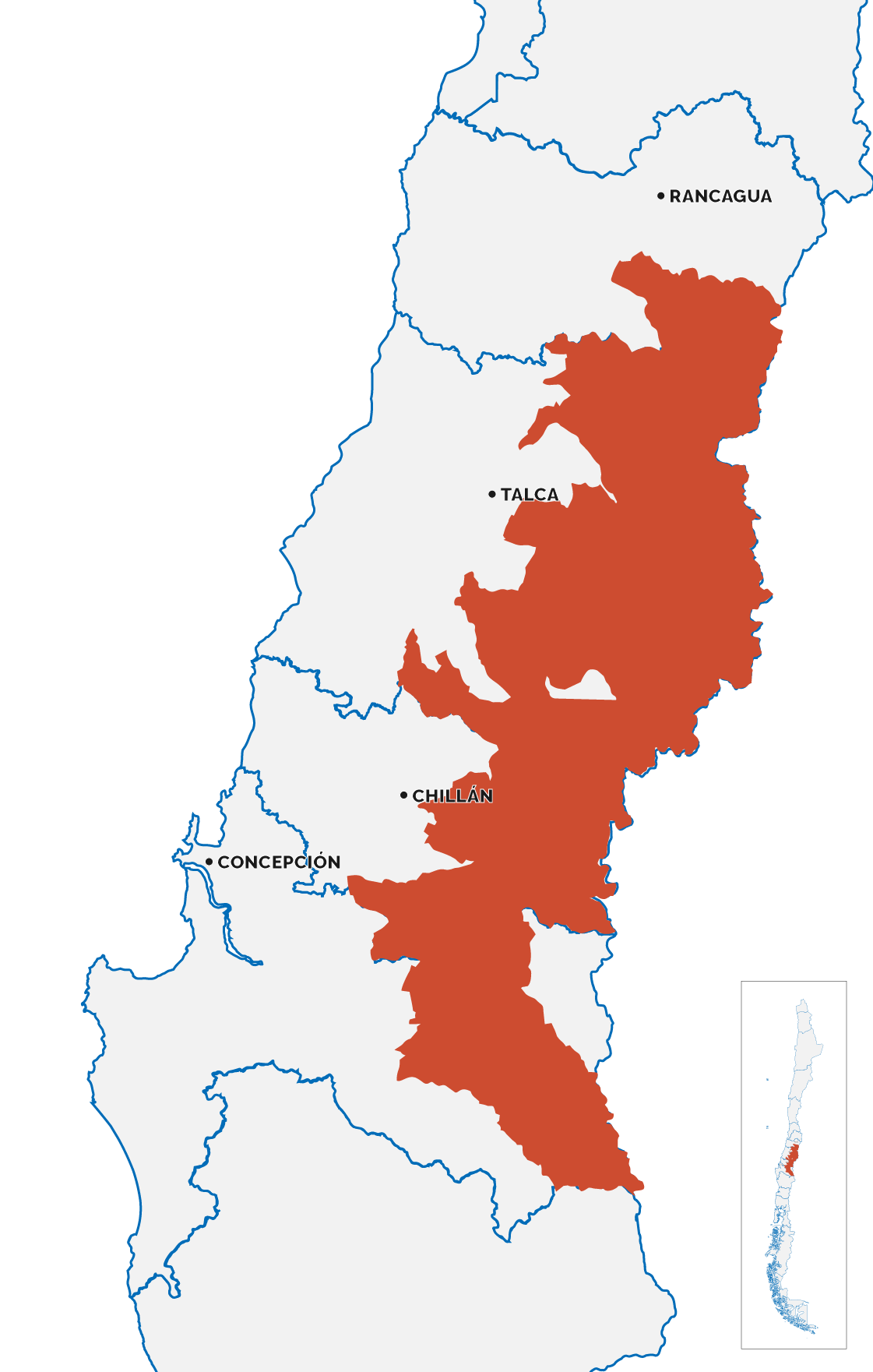 Corresponde a comunas de las regiones de O’Higgins, Maule y Biobío. Lo componen 21 comunas |