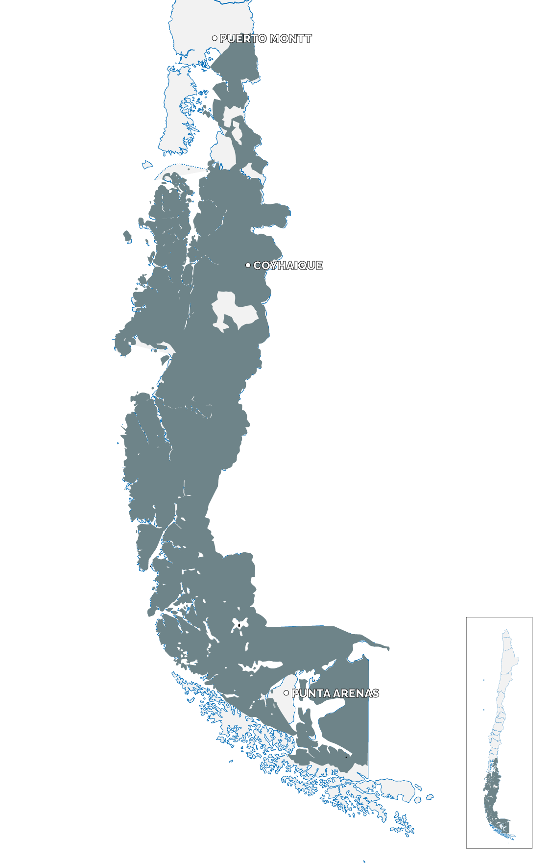 Corresponde a comunas que van desde la región de Los Lagos hasta la región de Magallanes, y lo componen 22 comunas. |